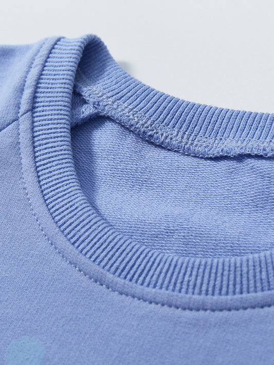 Girls’ Cartoon Pattern Embroidery Crew Neck Dress