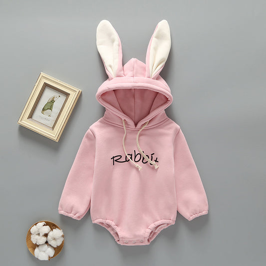 Baby Girl Print Pattern Rabbit Ear Design Long Sleeved Thickened Onesies
