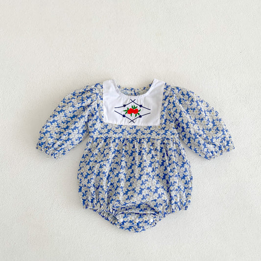 Baby Girl Ditsy Floral Pattern Embroidered Design Long Sleeved Onesies