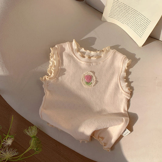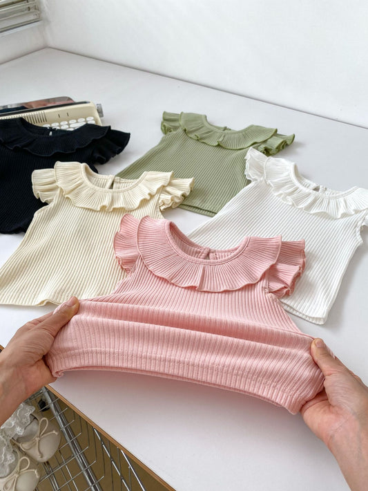 Summer Collection: Girls’ Sleeveless Ruffle Collar Solid Color Top