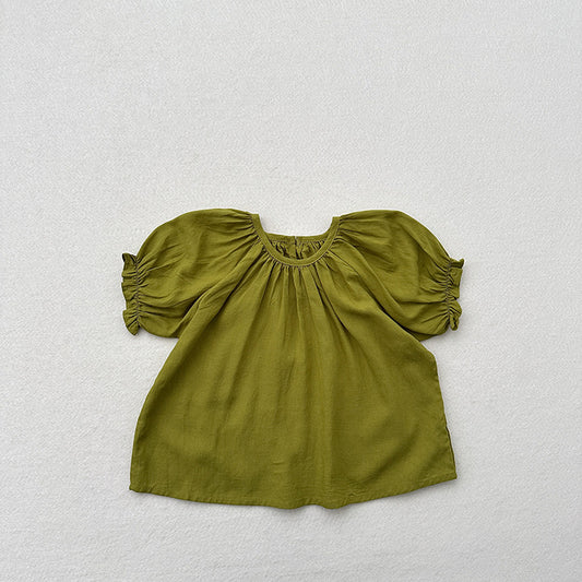 Summer Hot Selling Kids Girls Soft Comfortable Short Puff Sleeves Thin Solid Color Top Base T-Shirt