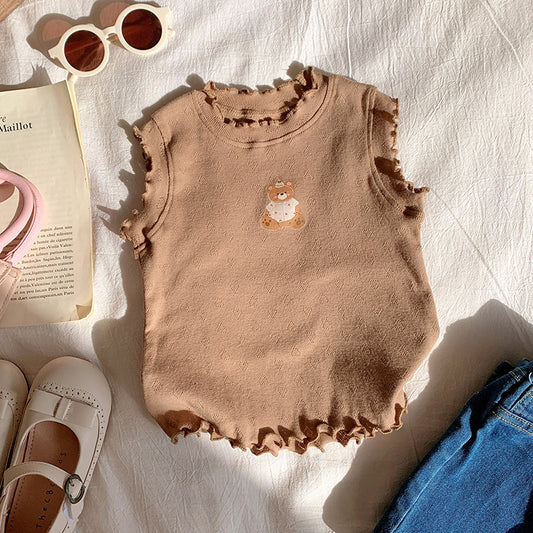 Arrival Girls Ruffle Neck Sleeveless Teddy Print Top Vest