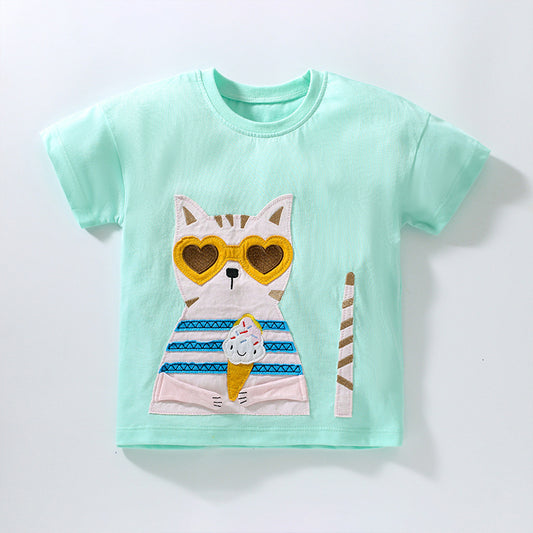 Kids’ Animals Cartoon Pocketed Short Sleeved T-shirt in European and American Style for Summer