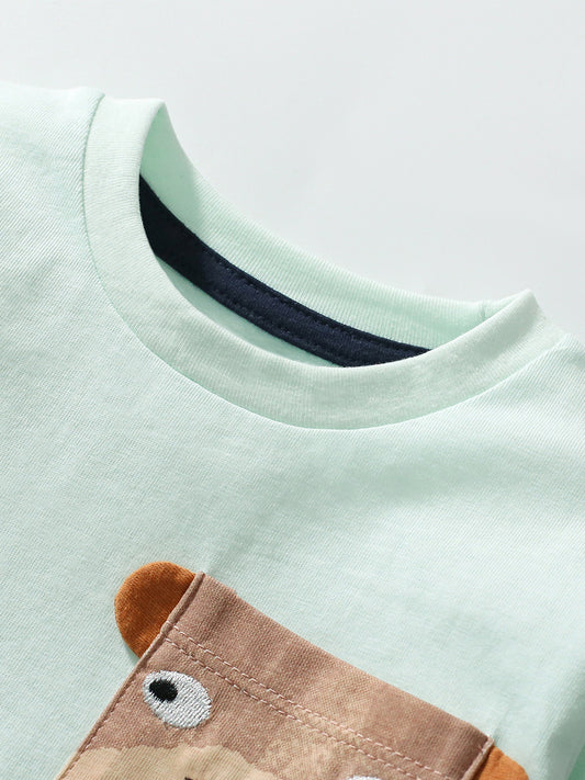 Kids’ Animals Cartoon Pocketed Short Sleeved T-shirt in European and American Style for Summer