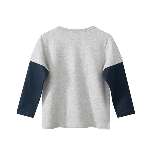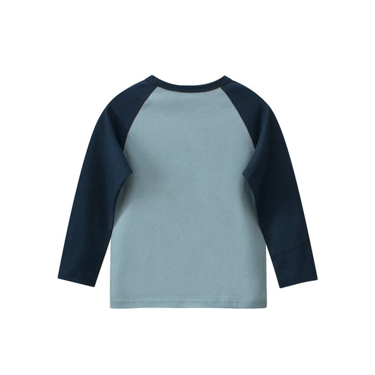 Spring Baby Kids Boys Letters and Cartoon Print Long Sleeves Crew Neck Color Patchwork Top