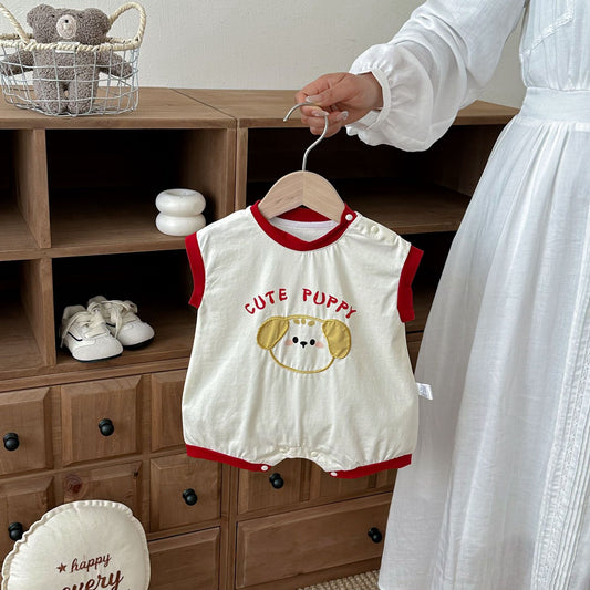 Summer Arrival Baby Sleeveless Cute Cartoon and Letters Pattern Rompers