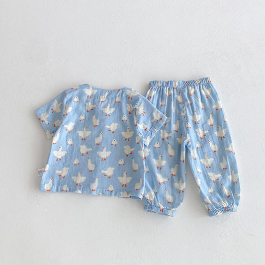 Summer Baby Kids Boys and Girls Short Sleeves Cartoon Pattern Top and Pants Pajamas Clothing Set