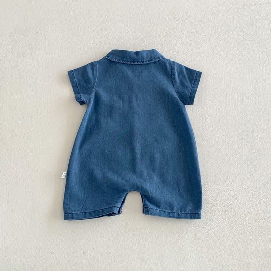 Summer Arrival Baby Short Sleeves Casual Turn-down Collar Denim Rompers
