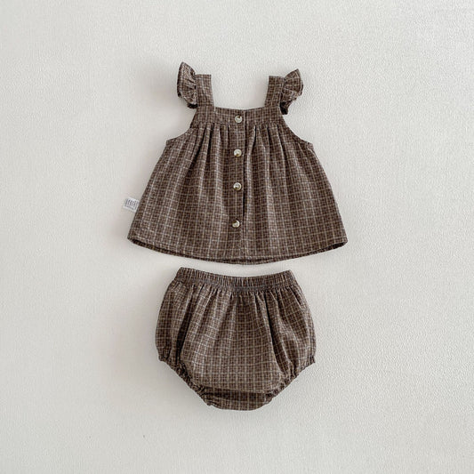 Summer Baby Kids Girls Sleeveless Plaid Vest and Bloomers Clothing Set