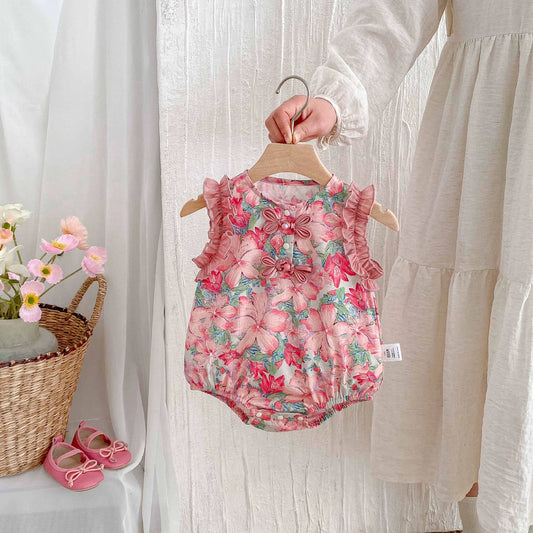 Autumn and Spring Arrival Baby Girls Long Sleeves Floral Pattern Casual Rompers