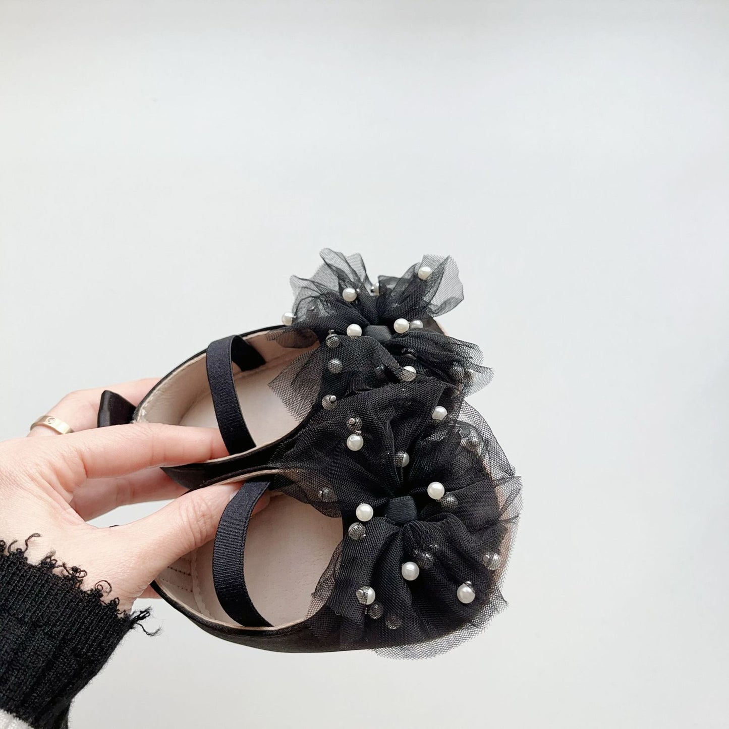 Spring and Summer Baby Girl Fashion Beaded Tulle Patchwork Toddler Soft-Sole Anti-slip Walking Shoes