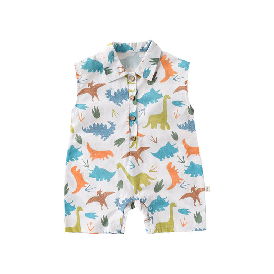 Summer Arrival Baby Unisex Sleeveless Cartoon Dinosaurs Pattern Single Breasted Rompers