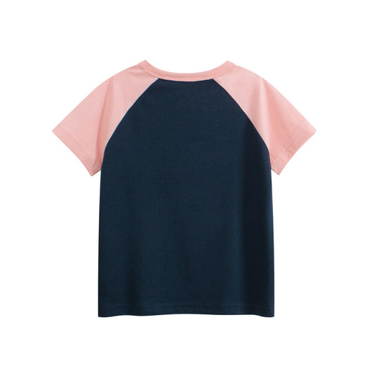 Summer Girls’ Cartoon and Letters Printed T-shirt in European and American Style