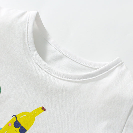 Kids’ Fruits Cartoon Pattern Short Sleeves T-shirt in European and American Style for Summer