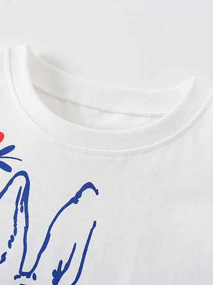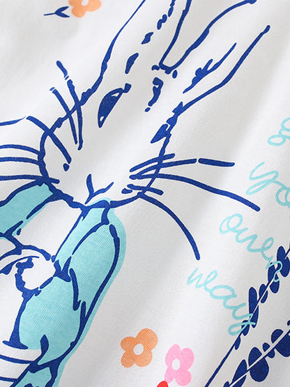 Summer Baby Kids Girls Flowers And Rabbit Print T-Shirt And Pants Clothing Set