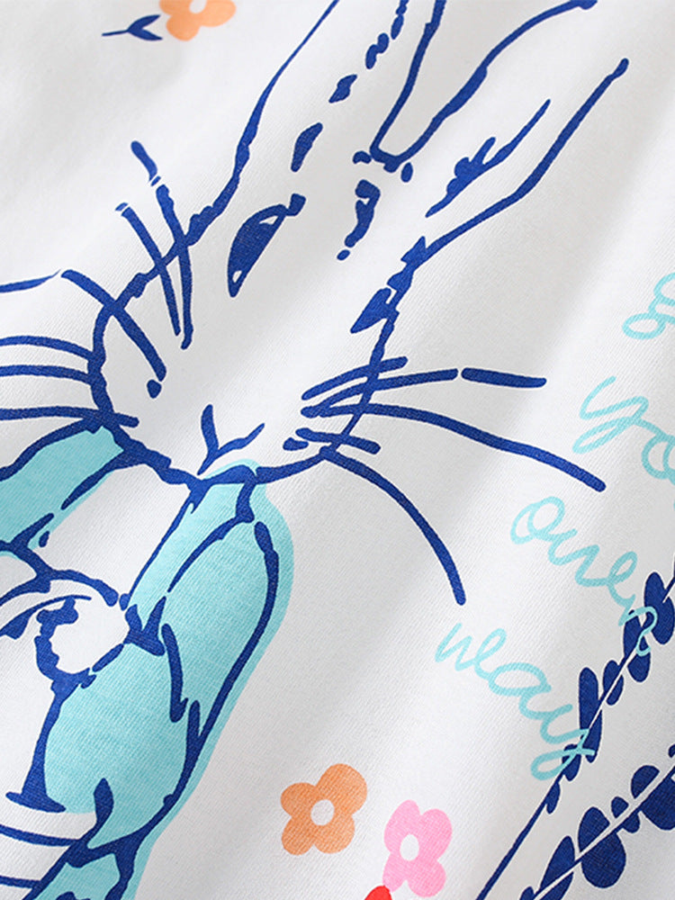 This Summer baby set features a delicate floral and rabbit print on a soft, breathable T-shirt paired with comfortable matching pants. Crafted for ease of movement and style, it ensures your little one stays cool and effortlessly charming during warm days. Ideal for daily wear, this ensemble combines comfort with a refined, whimsical design.