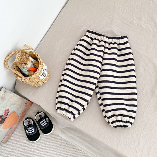 Autumn and Winter Arrival Casual Style Striped Pattern Fleece-Lined Pants for Baby and Kids