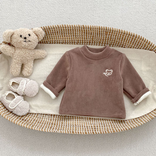 Autumn and Winter Arrival Baby Kids Unisex Long Sleeves Teddy Bear Pattern Fleece-lined Pullover