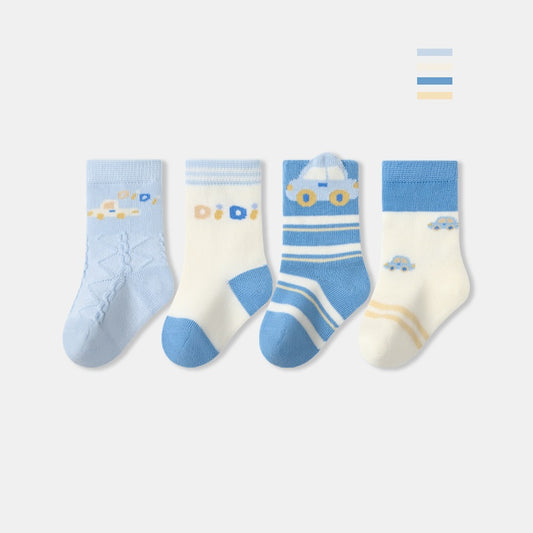 Autumn and Spring Arrival Baby Unisex Breathable Cute Cartoon Pattern Socks 1 Lot=4-Pair Set