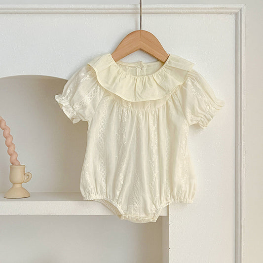 Baby Girl Solid Color Doll Neck Shirt Strap Onesies