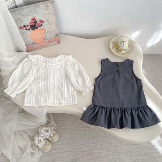 Regular price L 1,260.00 HNLRegular priceUnit price / perSale price L 1,260.00 HNLArrival Spring and Autumn Baby Kids Girls Peter Pan Collar Denim Onesies and Dress – Princess Sister Matching Set