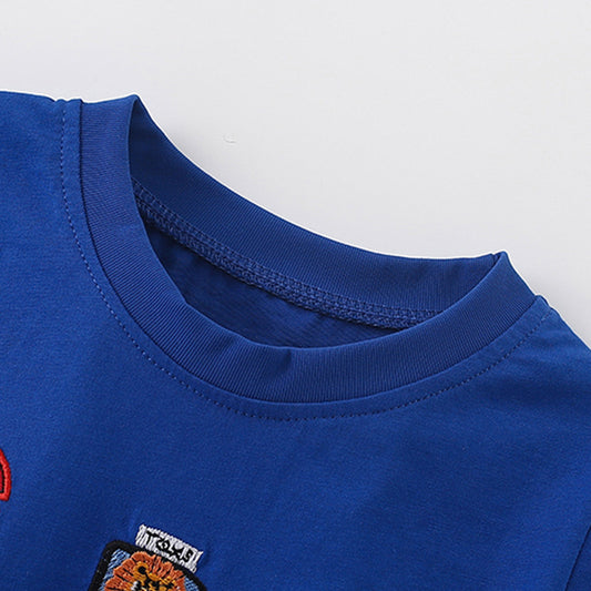 Summer Boys’ English Elements and Animals Cartoon Pattern T-shirt in European and American Style