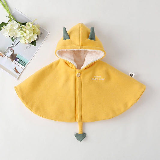 Kids Slogan Embroidered Graphic Cartoon Animal Shape Fleece Warm Shawls