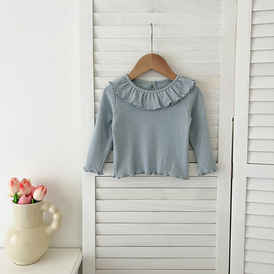 Baby Girl Solid Color Mesh Doll Neck Long Sleeve Top