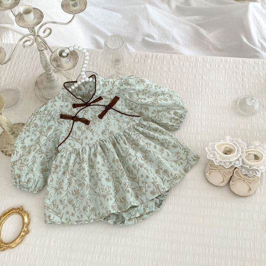 Arrival Baby Girls Long Sleeves Floral Print Stand Collar Bodysuits Onesies Dress