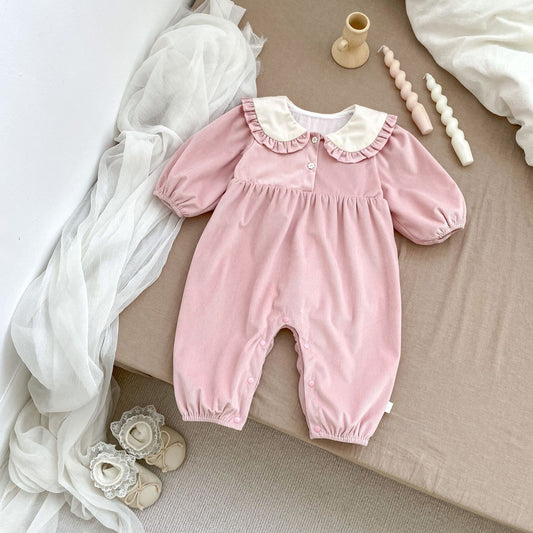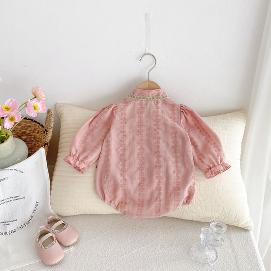 Arrival Autumn Baby Girls Long Sleeves Floral Pattern Romper with Embroidered Collar