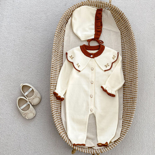 Arrival Autumn Baby Girls Long Sleeves Flowers Pattern Collar Knitted Romper