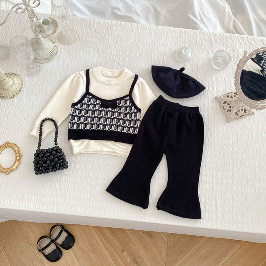 Arrival Autumn Baby Girls Long Sleeves Simple Color Patchwork Knitted Sweater and Solid Color Long Trousers – Clothing Set