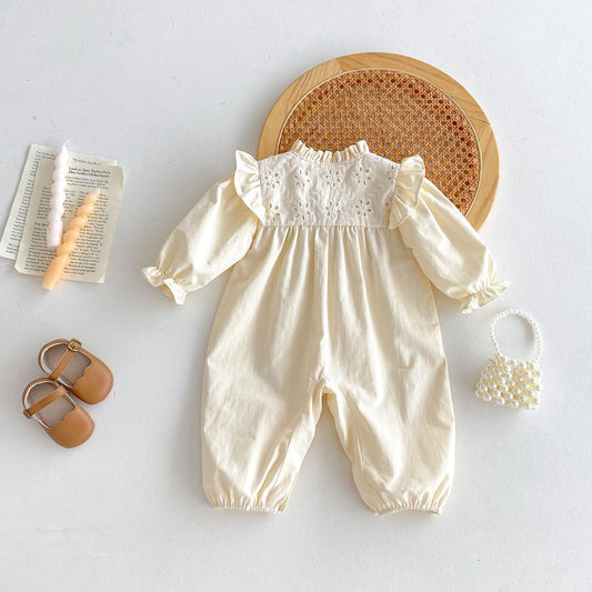 Autumn Arrival Baby Girls Long Sleeves Floral Hollow Out Rompers
