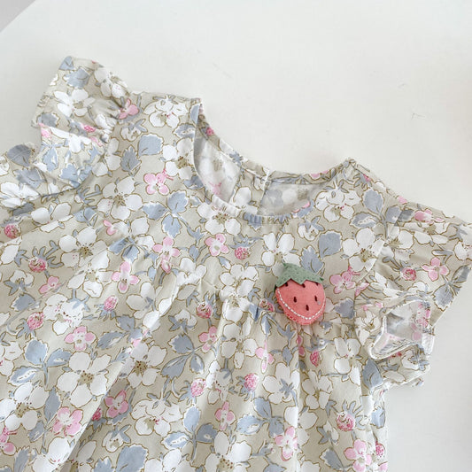Baby Floral Graphic 3D Strawberry Patched Design Butterfly Sleeve Onesies Dress