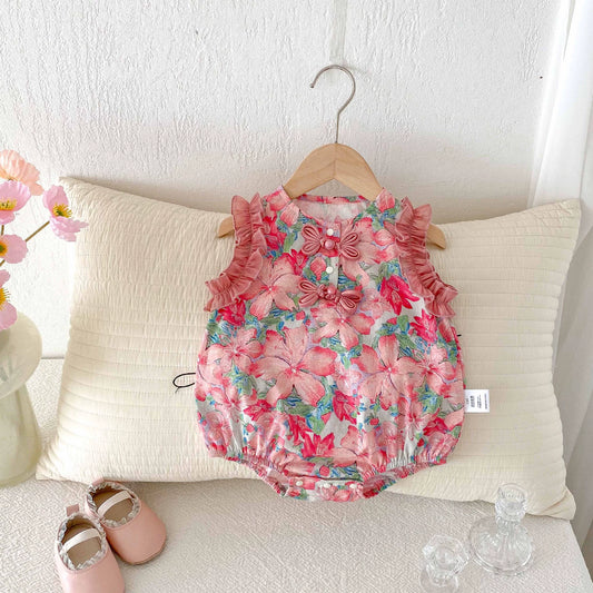 Summer Arrival Baby Girls Cute Floral Pattern Sleeveless Onesies