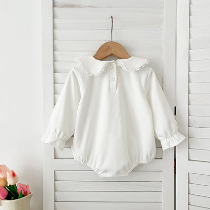 Spring Arrival Baby Girls Long Sleeves Floral Embroidered Peter Pan Collar bodysuit