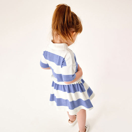 Summer Baby Kids Girls Animals Cartoon Logo Striped Polo Shirt And Skirt Clothing Set