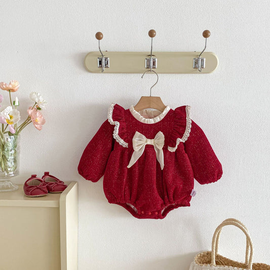 Autumn and Winter Arrival Baby Girls Long Sleeves Butterfly-bow Decorated Bodysuit