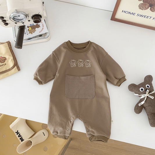 Autumn and Winter Arrival Baby Girls Long Sleeves Teddy Bear Pattern Casual Rompers