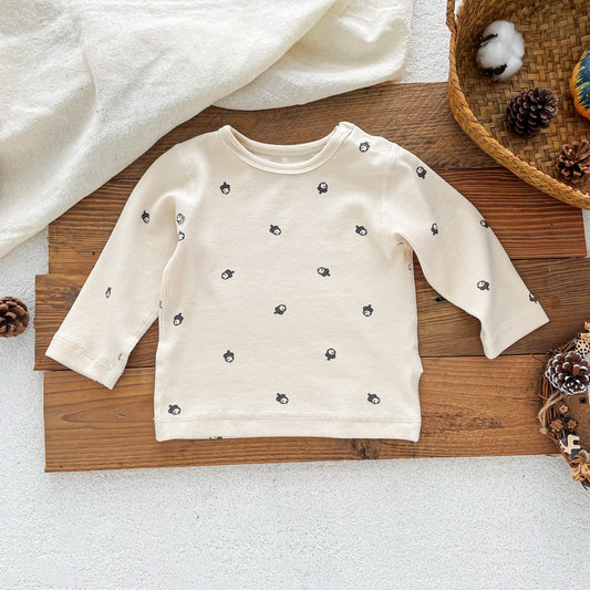 Autumn and Spring Baby Kids Long Sleeves Casual Nuts Pattern Top and Pants Clothing Set