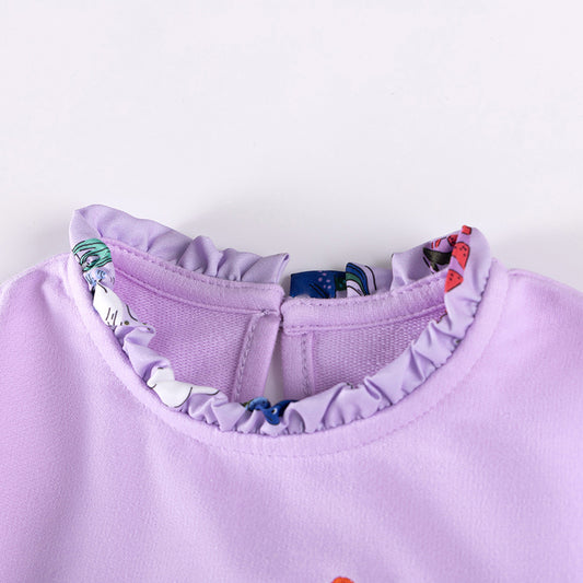 Autumn and Spring Arrival Unicorn Cartoon and Dots Pattern Long Sleeves Dress for Stylish Girls