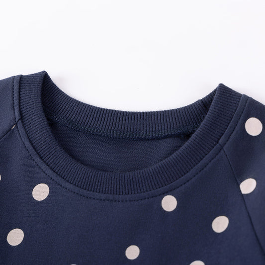 Autumn and Spring Arrival Christmas Cartoon and Dots Pattern Long Sleeves Crew Neck Dress for Stylish Girls