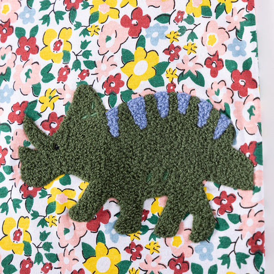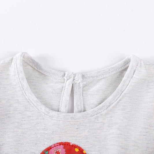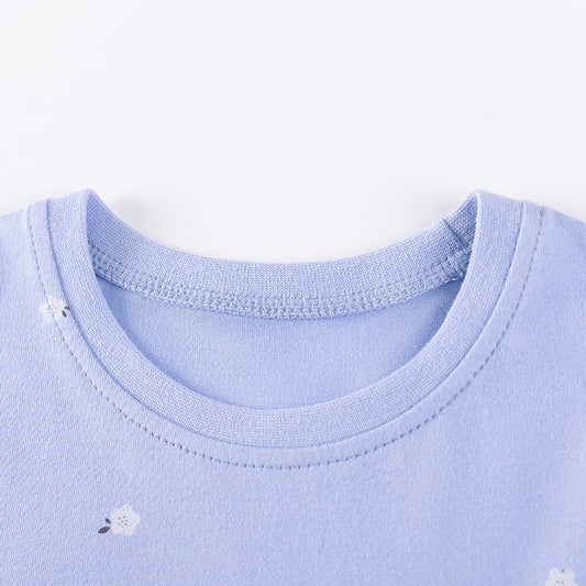 Autumn Arrival Cartoon Animals and Floral Pattern Long Sleeves Crew Neck Dress for Stylish Girls