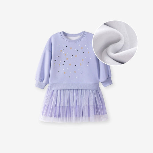Autumn Arrival Fairy Cartoon Pattern Long Sleeves Crew Neck Dress for Stylish Girls