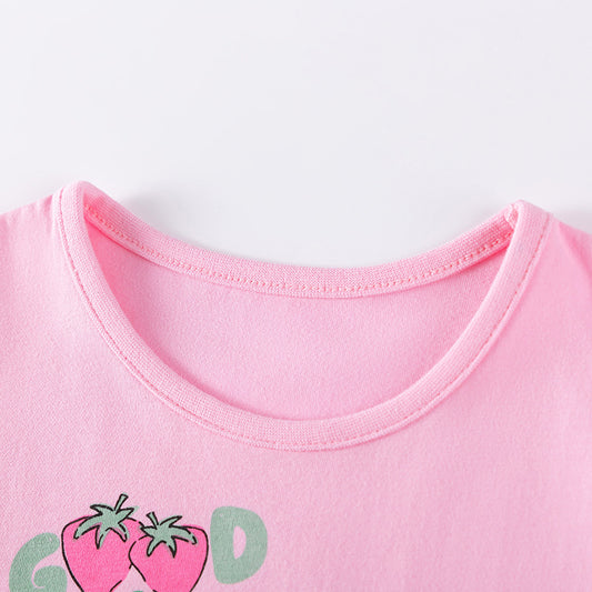 Autumn and Spring Arrival Strawberry Cartoon and Polka Dots Pattern Long Sleeves Crew Neck Dress for Stylish Girls