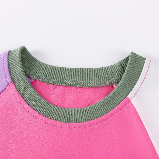 Autumn Arrival Cartoon Rabbit Pattern Long Sleeves Crew Neck Color Patchwork Dress for Stylish Girls