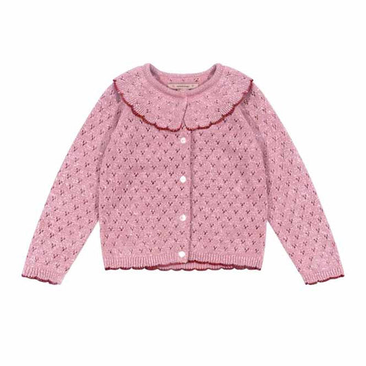 Autumn Arrival Baby Kids Girls Long Sleeves Geometric Pattern Single Breasted Knitted Cardigan with Collar