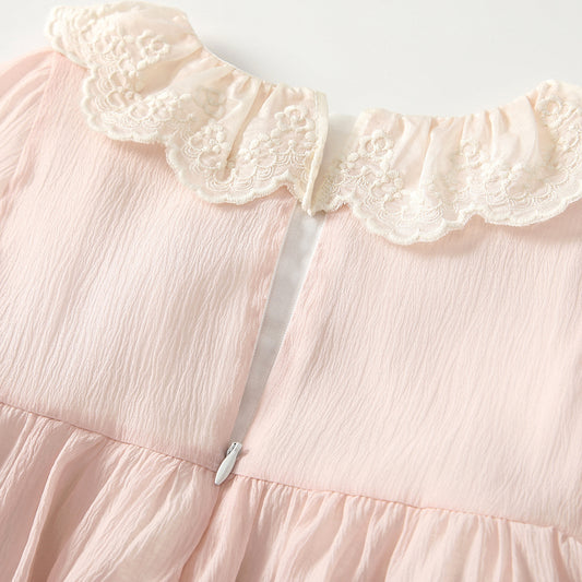 Regular price ¥7,600 JPYRegular priceUnit price / perSale price ¥7,600 JPYSpring Arrival Baby Girls Long Sleeves Solid Color Peter Pan Collar Onesies Dress