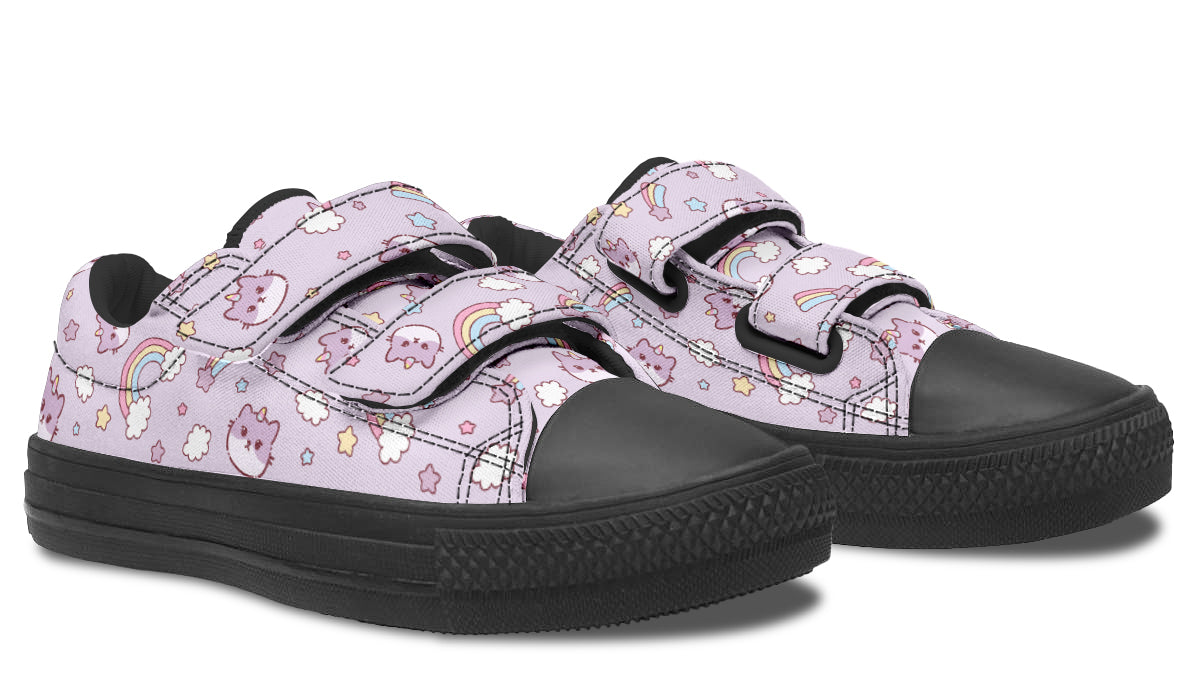 Step into fun with these Kids Low Top Shoes featuring colorful rainbows and playful cats. Designed for comfort and style, they brighten every step your child takes while providing a snug fit for active days. Perfect for little adventurers who love a splash of whimsy in their wardrobe!