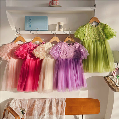 This charming summer dress features a delightful butterfly pattern and airy tulle fabric, perfect for stylish girls who love to twirl. With short sleeves and a light, breathable design, it keeps little ones cool and comfortable while adding a touch of whimsy to any sunny day adventure.